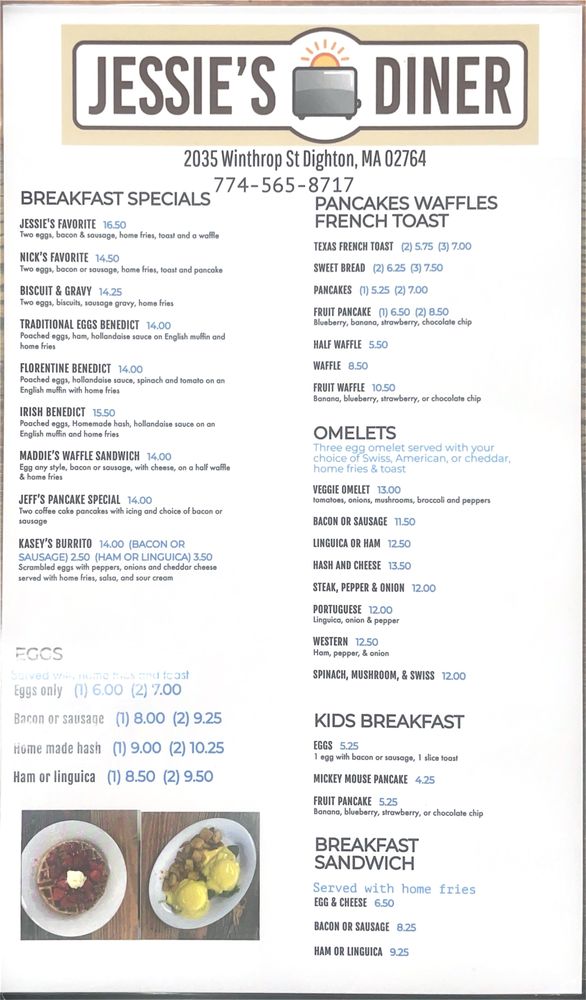 Welcome to Jessie’s Diner, a delightful spot nestled at 2035 Winthrop St, Dighton, MA. This women-owned diner offers a menu that harmoniously blends classic comfort food with innovative twists. From hearty breakfasts to satisfying lunches and hearty dinners, every dish is crafted with care to provide an unforgettable dining experience.